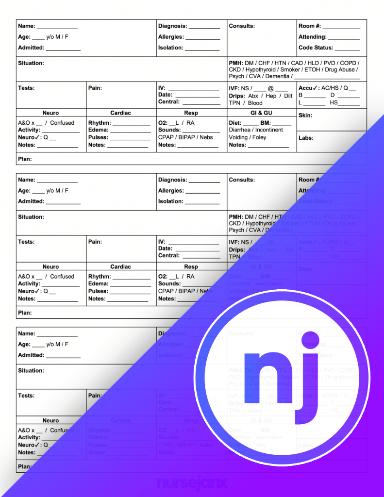 This is the minified, electrified, kickass-ified version of the OG full-size SBAR nursing report sheet.